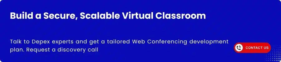 If you are ready to evaluate your current stack, choose the right standards, and design an AI ready rollout that fits your budget and timeline, Depex Technologies can help. Our team will align features with your learning goals, reduce risk with strong governance, and accelerate delivery with a tested blueprint. Contact Depex Technologies today to start your Web Conferencing software development project and turn live sessions into lasting learning value.